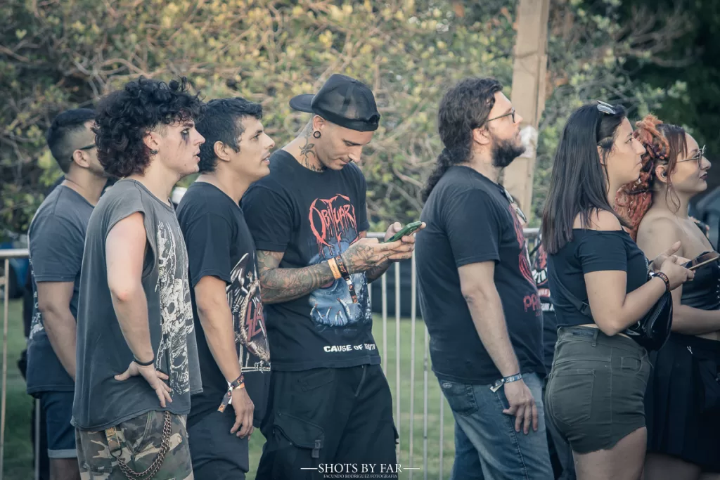 Y así comenzaba nuestra jornada. El clima era ameno, corría algo de viento y se estaba bien. Los metaleros, dispersos, recorrían pequeños stands, limitados en número pero con una variedad interesante dentro de lo que ofrecían. La parrilla no paraba un segundo, la birra siempre la servían helada y el fernet en vasos del festival, reutilizables.