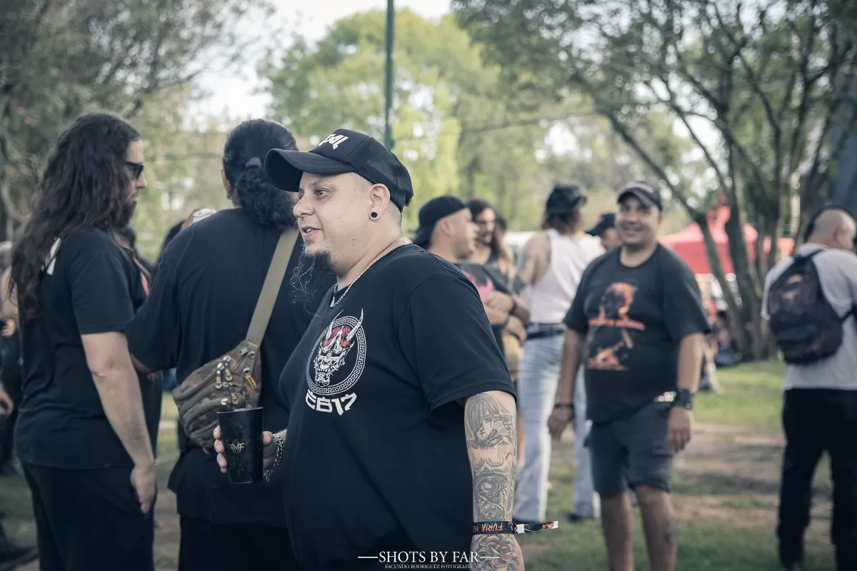 Y así comenzaba nuestra jornada. El clima era ameno, corría algo de viento y se estaba bien. Los metaleros, dispersos, recorrían pequeños stands, limitados en número pero con una variedad interesante dentro de lo que ofrecían. La parrilla no paraba un segundo, la birra siempre la servían helada y el fernet en vasos del festival, reutilizables.