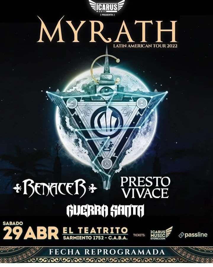 Llega a nuestro país Myrath, banda de folk metal progresivo, originaria de Túnez. La agrupación tiene la particularidad de incluir en sus composiciones algunos elementos del Maqam, un sistema de modos melódicos basado en la música árabe tradicional. Visitarán por primera vez la Argentina en el marco de su gira ”Latin American Tour 2023”, que viene reprogramado de 2022, presentando su último álbum «Shehili», de 2019. Será el sábado 29 de abril a las 18:30 en El Teatrito (Sarmiento 1752 – CABA), y los teloneros serán Presto Vivace, Renacer y Guerra Santa.