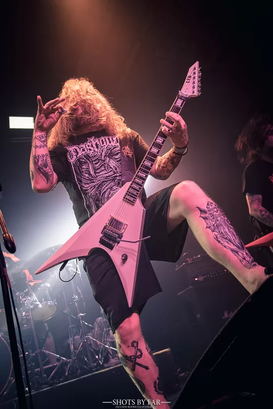 El clásico se desata y Davish se imbuye en esa energía, magnética y violenta, que lo rodea. Corren alrededor de él como si de una rueda cinética se tratara, energizando al guitarrista con cada paso, cada grito, cada puño alzado. Prácticamente todo el tema así ocurrió, con una entrega absoluta del guitarrista hacia los suyos. Una huella que quedaría grabada en los fanáticos que asistieron a uno de los mejores shows de metal del año.