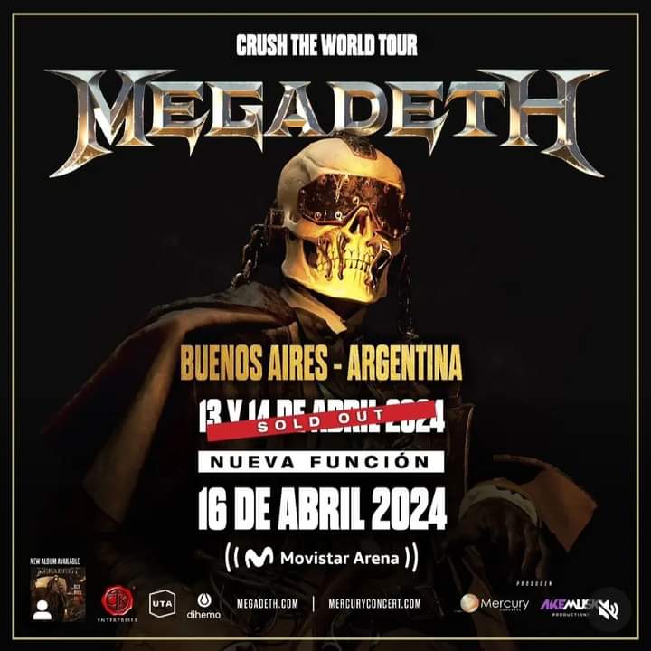 El “Crush The World Tour” pisará fuerte en nuestra región, tras 5 años de ausencia de la banda por estos pagos. Además, atraerá las miradas de los fanáticos uruguayos, quienes no contarán con la presentación de la banda en su país. Este año se cumplen tres décadas desde el primer show de la banda en nuestro país. Puntualmente, la fecha coincidirá con la primera presentación de la banda en abril. Serán tres días inolvidables con el gigante del Thrash Metal marcando a fuego el regreso al país que dió nacimiento al “Aguante Megadeth”.