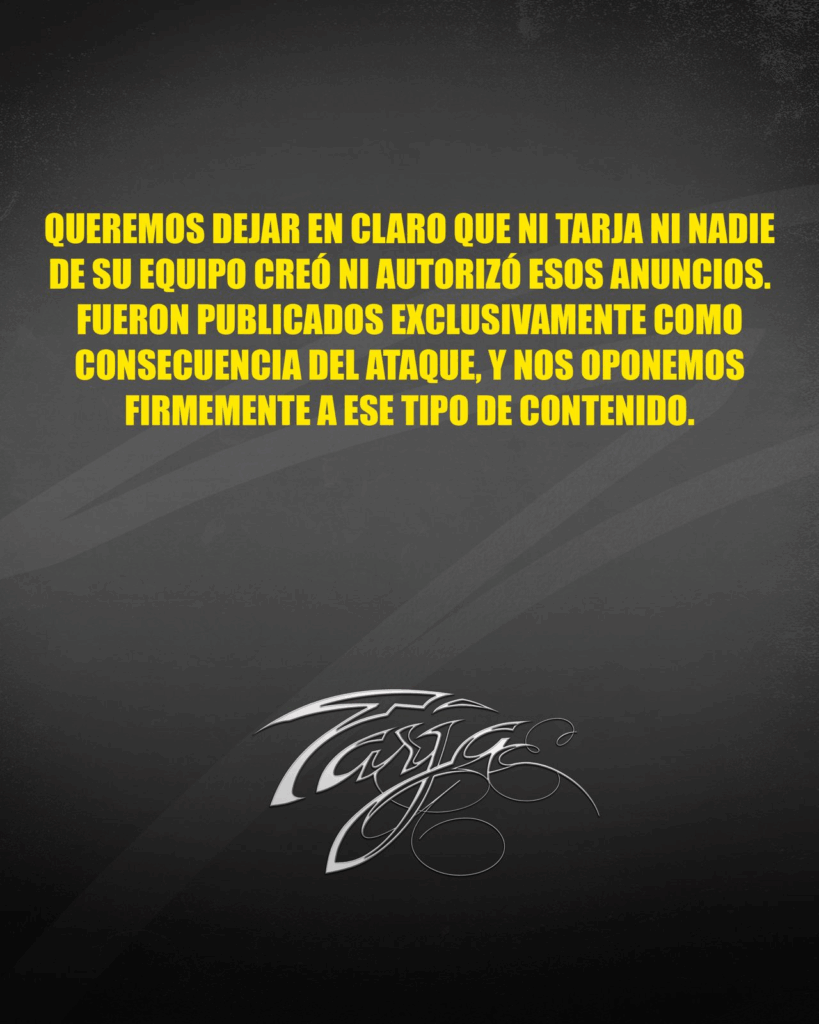 Tarja ha publicado diversos mensajes en su Instagram dando a conocer los hechos. Estos decían lo siguiente: «El 2 de abril, las cuentas oficiales de facebook e instagram de tarja fueron comprometidas por personas no autorizadas que accedieron mediante un ciberataque malicioso (…) A pesar de haber estado en contacto con el soporte de Meta por mas de un mes y de que confirmaron que la cuenta, efectivamente, fue hackeada, aún no se ha brindado ninguna solución y la suspención sigue vigente (…) Solicitamos, respetuosamente, su apoyo llamar la atención de Meta Support sobre esta situación. Al usar el hashtag #freetarjafacebook, pueden ayudarnos a exigir una resolución justa y oportuna.»
