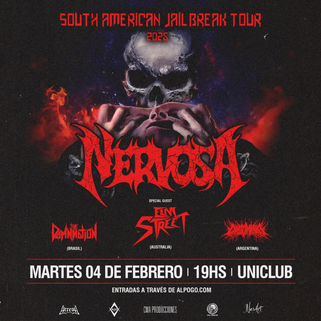 La banda femenina de Thrash Death Metal del Brasil, Nervosa, regresa a Argentina para presentar su nuevo álbum llamado «Jailbreak». El evento se llevará a cabo el martes 4 de febrero a las 19hs en Uniclub, ubicado en Guardia Vieja 3360, CABA. Junto a ellas, se presentaran dos bandas internacionales: Elm Street de Australia y The Damnation, provenientes de Brasil. Los locales de Disomnia representarán la bandera argentina.