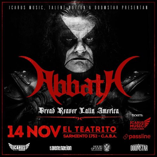 Olve Eikemo, mejor conocido como Abbath, llegará a nuestro país nuevamente de la mano de Icarus, Talent Nation y DoomStar. La cita será el martes 14 de noviembre en El Teatrito, en le marco de su gira por la región, titulada «Dread Reaver Latín América 2023». Esta comenzará el día 9 de dicho mes en Monterrey (México), y finalizará el 19 en Sao Paulo (Brasil).