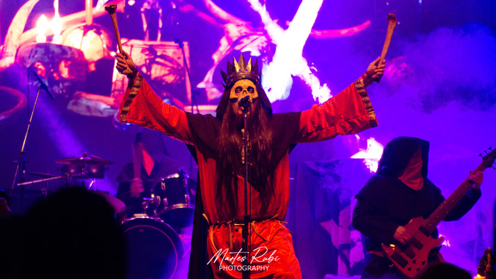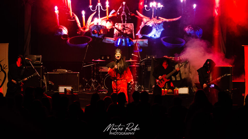 A las 18:05 hs esta agrupación de estilo Black Metal esotérico irrumpió en el escenario con sus miembros vestidos de sacerdotes, con mascaras en sus rostros, y cubriendo de oscuridad el recinto. Son considerados como una de las mejores bandas del género en el país, sus 10 años en el ambiente los avalan. En su presentación hicieron un repaso breve de su particular discografía, y generó en el público una sensación de estar poseído por el dios del inframundo. Cada grito del frontman fue como una hoz atravesando nuestra humanidad y seccionándola en dos. Antes de finalizar el show, el vocalista arengó al público, que ya estaba poseído musicalmente hablando. El show finalizó a las 18:35 hs.