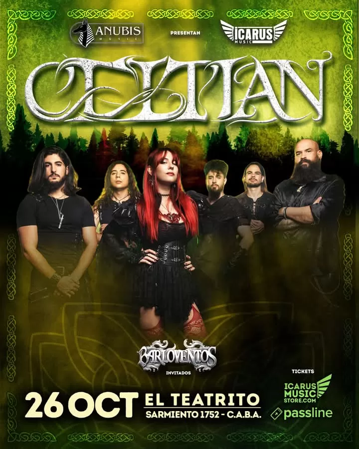 La agrupación española de folk metal sinfónico Celtian desembarcará por primera vez en nuestro país. La cita será el domingo 26 de octubre en El Teatrito, ubicado en Sarmiento 1752 (C.A.B.A.). Llegan en el marco de su gira mundial que iniciaron en Europa en 2024, y finalizará en mayo de 2026. La noche también contará con la participación de la banda local Barloventos como número de apertura.