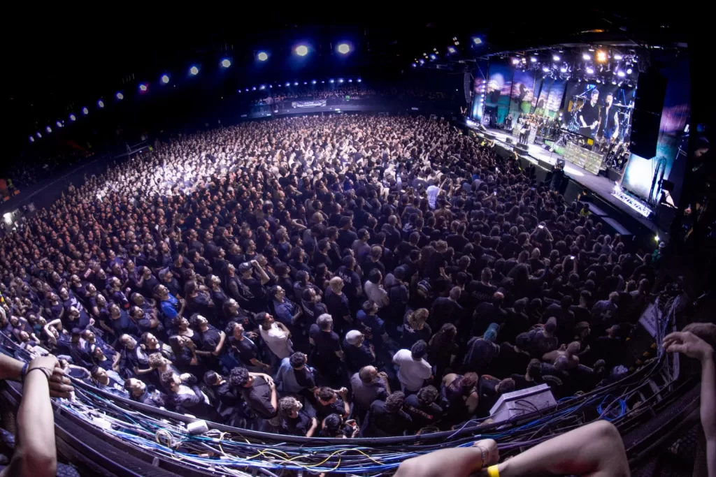 A las 20:10 las luces se atenuaron y apareció en pantalla un video del Tano en formato acústico. Interpretó “Presa Fácil”, “Tú eres su seguridad”, “Muy cansado estoy” y una versión sentida de “Si me ves volver” que dejó a más de uno quieto, mirando sin hablar. La proyección fue íntima, como si nos permitiera espiar al músico reencontrándose con su pasado. Cada tema era una postal que unía a V8, Hermética y Almafuerte. No fue nada grandilocuente: solo una guitarra, una voz y un público que acompañó con fuerza.