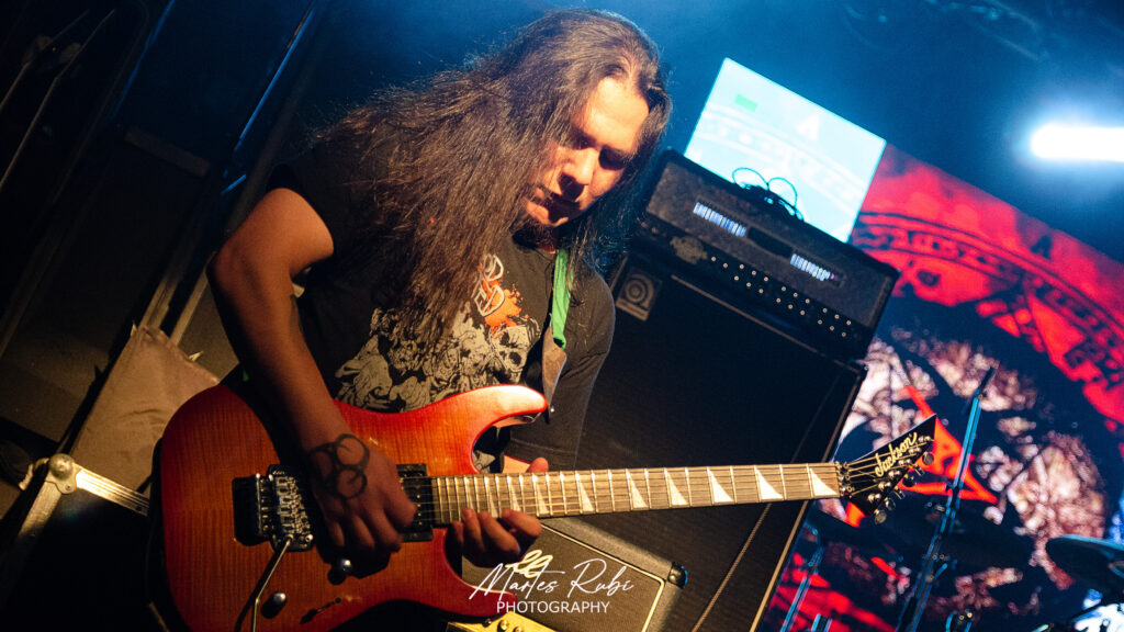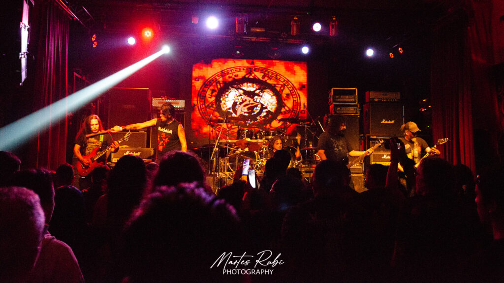 Cuando llegué al lugar, había aproximadamente una cuadra de fila, donde los fieles del culto oscuro aguardaban por entrar al templo musical. Las puertas se abrieron a las 19 horas puntual, y a la media hora Lea Cabrera, vocalista de la banda, salió con un machete y una hoz, dispuesto a mutilar musicalmente al público asistente a puro Death Metal. Sonó en el amanecer del set list «Abominable Ser», donde la voz contundente del frontman fue como una espada sedienta de sangre, seccionándonos en dos partes a los espectadores. Luego llegaron «Aspira» y «La Última Plegaria», sendos temas del set list. Lea constantemente iba y venia en el escenario, como si estuviera poseído por el demonio. Luego llegó el momento de presentación de la banda, y se despidieron con la canción «Pandemia». El show terminó a las 20 horas.