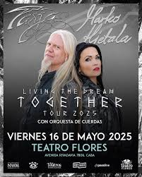Tarja Turunen y Marko Hietala estarán aterrizando en la Ciudad Autónoma de Buenos Aires este 16 de mayo. Los ex Nightwish tocarán en el Teatro Flores, ubicado en Avenida Rivadavia al 7806. En el marco de la gira «Living The Dream Together», Tarja y Marko interpretarán, junto a una orquesta de cuerdas, los grandes clásicos de la cantante finlandesa y otras obras de su pasado en conjunto.