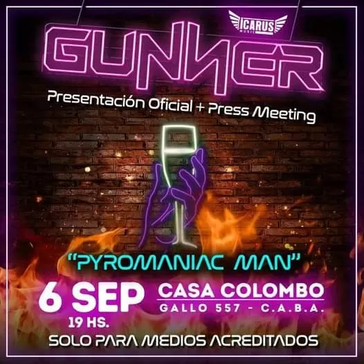 El pasado 6 de septiembre se llevó a cabo en Casa Colombo la presentación del videoclip «Pyromaniac Man» de la banda nacional Gunner. La producción corrió por cuenta del sello Icarus Music, y sólo estaban habilitados para el ingreso los medios acreditados, quienes fueron recibidos con un ágape.