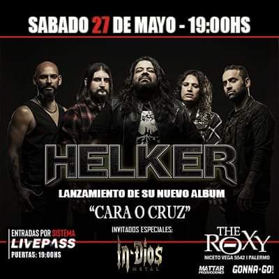 La banda argentina de Heavy Metal Helker se apresta a presentar su nuevo álbum el sábado 27 de mayo. La convocatoria es en The Roxy, Niceto Vega 5542 del Barrio Palermo (CABA), desde las 19 horas. La banda invitada para este acontecimiento será In-Dios, banda liderada por Daniel Medina (hoy cantante de Tren Loco). Las entradas anticipadas parten desde los $2500 y se pueden conseguir en el siguiente enlace: https://livepass.com.ar/events/helker-en-the-roxy-27-05.