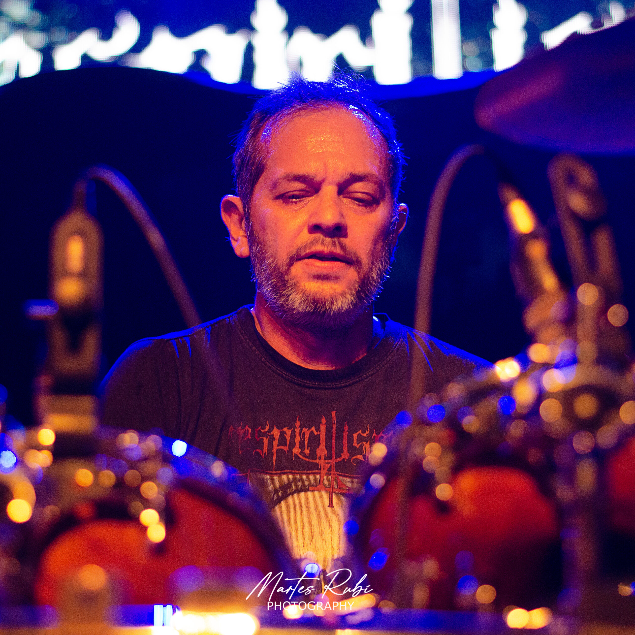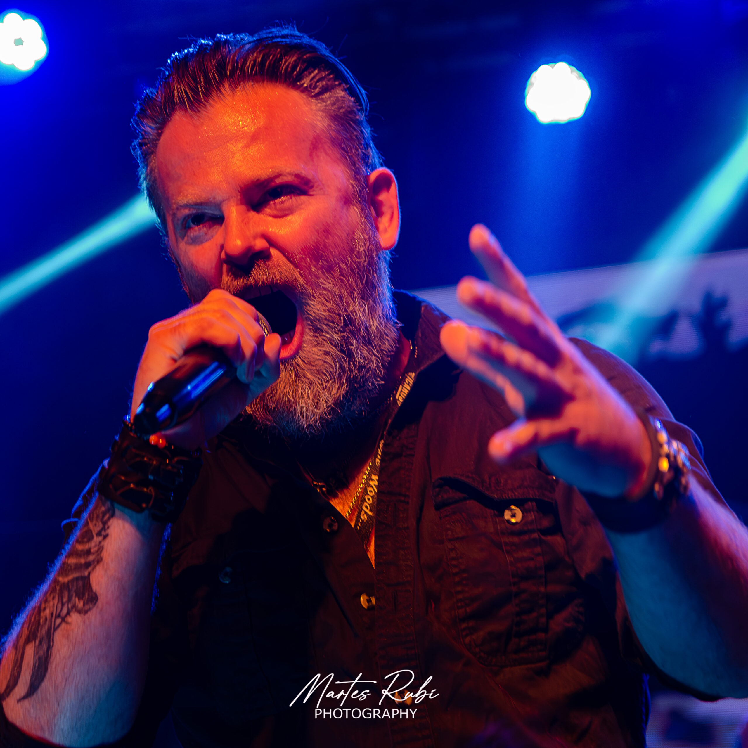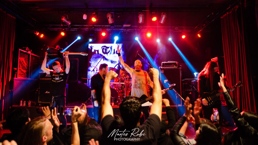 Sin mucho público aún en el salón, sale la primera banda de la noche, Cavernaria, con un sonido envolvente de melodic death metal. Debe destacarse la gran apuesta escenográfica y estética de la banda, que salió junto con dos personas que hacían de invocadores oscuros, vestidos de quimeras y que intervenían en la escena dándole a la interpretación de la banda un manto de ocultismo bien interesante. Punto álgido en la sexta canción de su performance con “Sentenciados” y cerrando su presentación con el séptimo tema y casi 40’ de show.