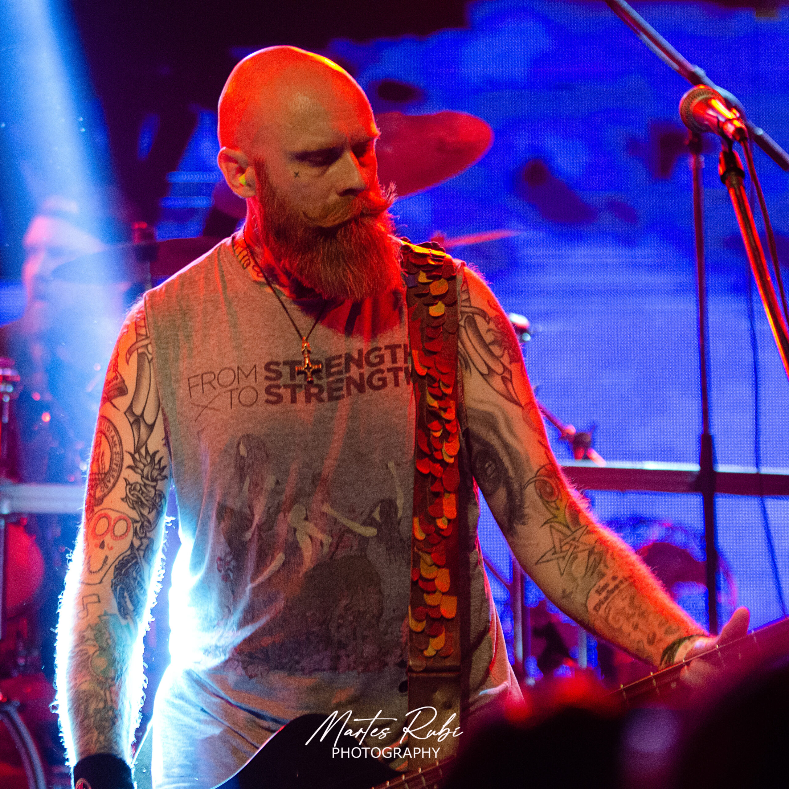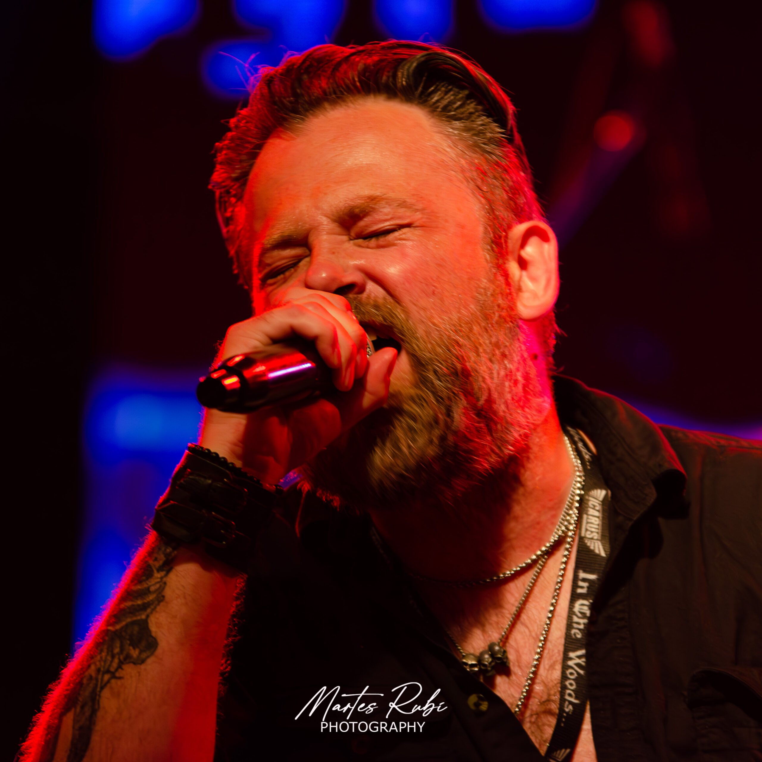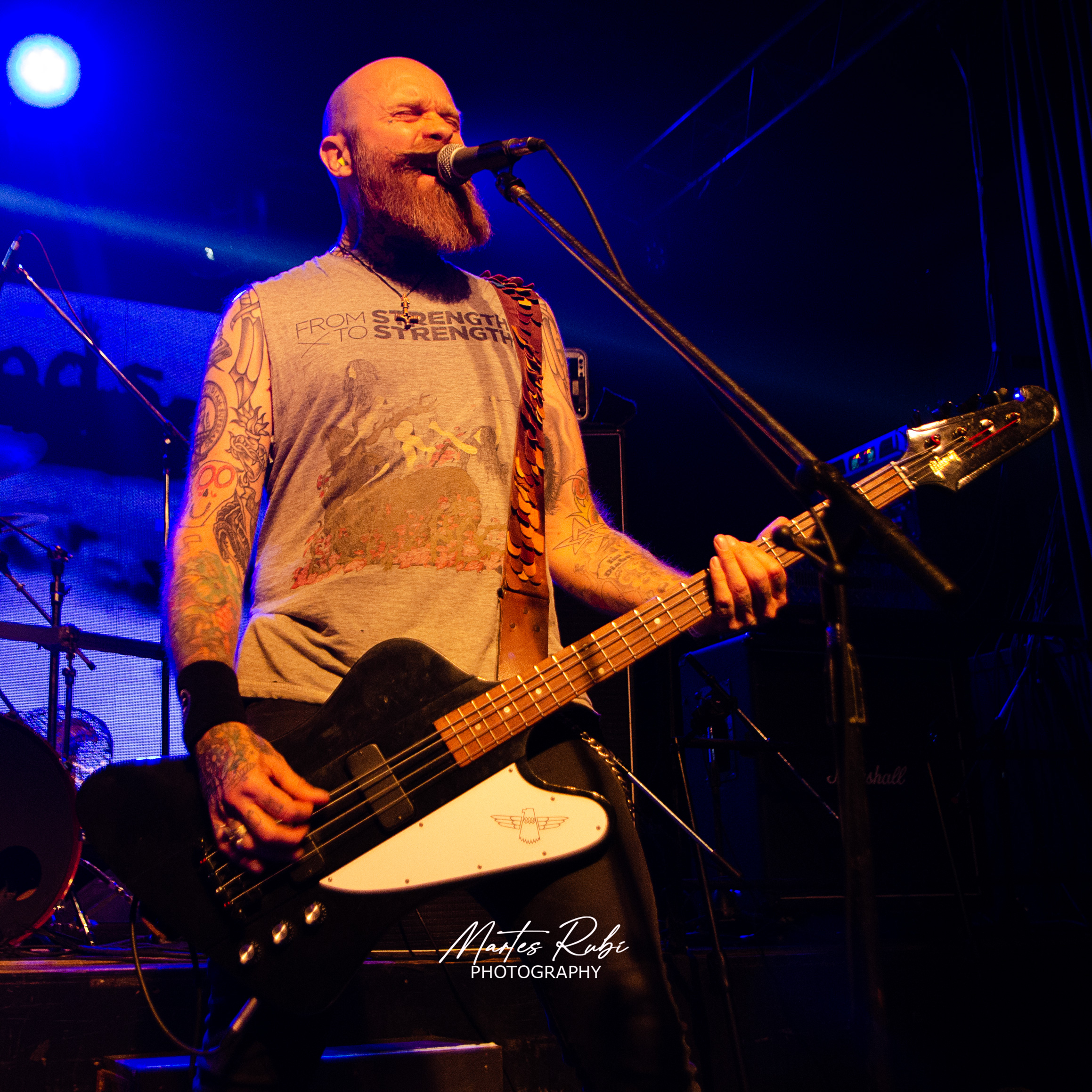 Sin mucho público aún en el salón, sale la primera banda de la noche, Cavernaria, con un sonido envolvente de melodic death metal. Debe destacarse la gran apuesta escenográfica y estética de la banda, que salió junto con dos personas que hacían de invocadores oscuros, vestidos de quimeras y que intervenían en la escena dándole a la interpretación de la banda un manto de ocultismo bien interesante. Punto álgido en la sexta canción de su performance con “Sentenciados” y cerrando su presentación con el séptimo tema y casi 40’ de show.