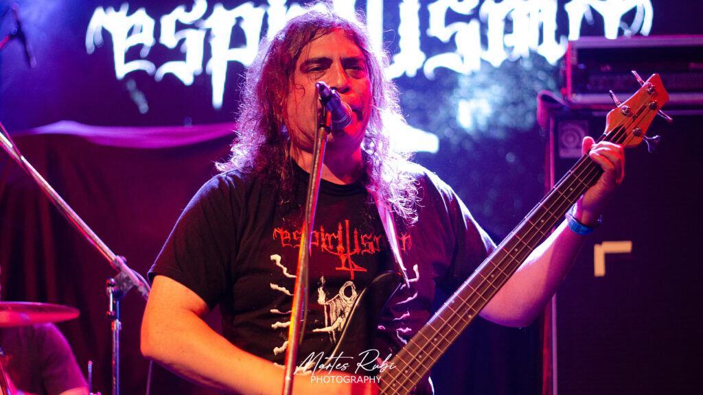 Con una puntualidad germana, a las 20.39, sale la última banda que precede a In the Woods, Espiritismo. Es insoslayable la potencia y la mística de misterio que transmite esta banda, desde su letras hasta la forma de tocar. Tengo que hacer una mención especial de “Chavato”, el frontman y bajista de la banda, quien más que un cantante es un invocador que ulula magia oscura en una payada negra. Fueron 6 temas a pura invocación espiritual y ocultista, con un público completamente obnubilado e hipnotizado con la “Fructífera cosecha de la sabiduría no escrita”. Pura tradición juglar y potencia oscura. Cierra una presentación formidable a las 21.10, y ya todo estaba listo para la joya de la noche.