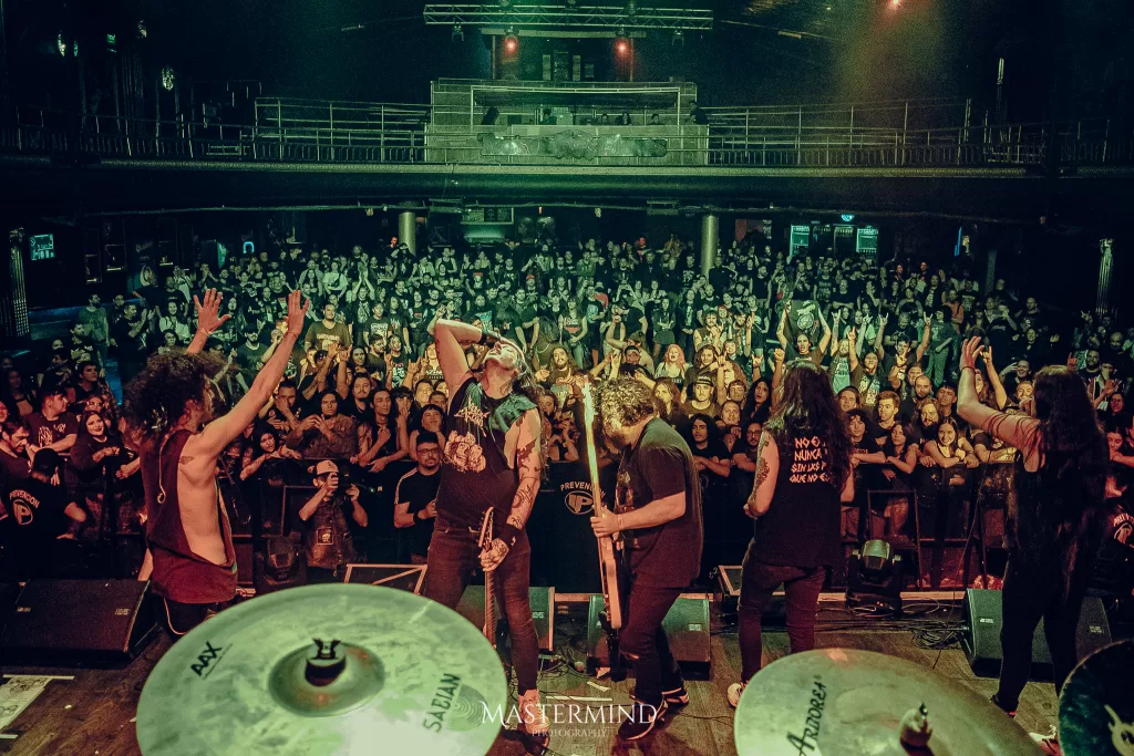 El repertorio es una descarga implacable de temas como «Extinción», «Pandemia», «Hiroshima» y «Tropas de la noche. Cada canción es una explosión que mantiene al público atrapado, cabeceando al ritmo de riffs agresivos y un doble bombo que no da tregua.