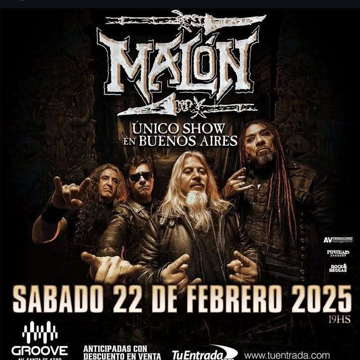 Malón, uno de los principales exponentes de Heavy nacional de la historia y actualidad argentina, sigue presentando «Oscuro Plan del Poder», su último trabajo discográfico. El año pasado comenzaron, con sus shows junto a Iron Maiden, una serie de presentaciones que los llevarán por distintos países del mundo para llevar su último material a sus fanáticos fuera del territorio argentino. Dicha gira los llevará por Ecuador, Uruguay, El Salvador, Honduras y luego a una serie de fechas por España, en el continente europeo. No obstante, la banda fundada por los ex-Hermética, Claudio O’Connor y Antonio «Tano» Romano desatarán el infierno en Groove antes de despedirse de sus compatriotas. La cita es el 22 de febrero, y las entradas están disponibles en la plataforma de TuEntrada, haciendo click en este enlace.