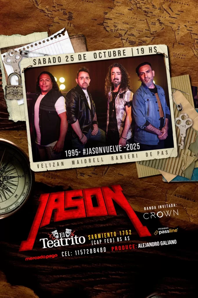 Luego de una larga espera por parte de sus fanáticos, semanas atrás se confirmaba el regreso de Jason. Una agrupación muy querida y respetada de la escena nacional. Surgidos a comienzos de los años noventa bajo el acrónimo de «Justiciero Arcaico De La Sociedad Nativa», impactaron con su propuesta centrada en el Metal clásico, con algunos tintes melódicos y muchas armonizaciones. Desde entonces, el grupo editó seis discos y giró por todo el país, consolidándose como una agrupacion fundamental de la escena nacional.