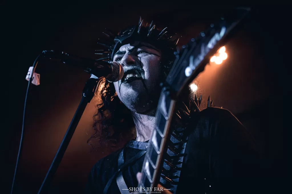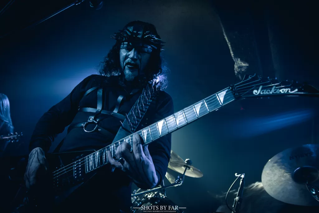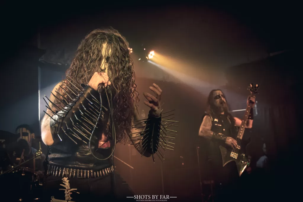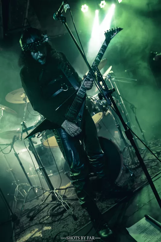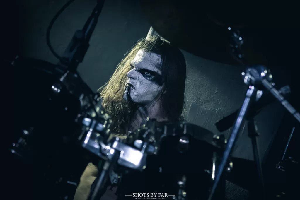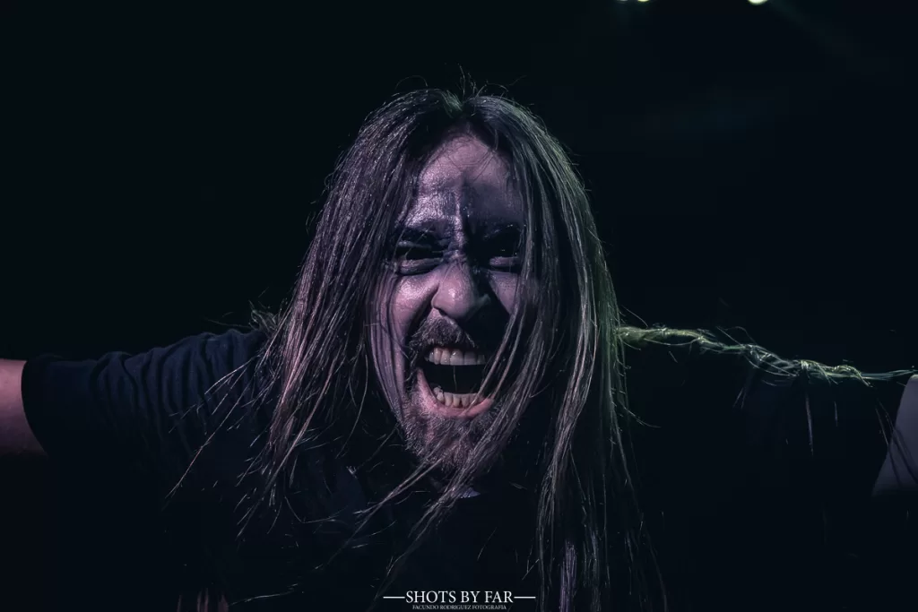 El set comienza con “Trumps of an Archangel”, de su trabajo más actual, que desciende como una invocación directa. El zigzagueo de acordes que tiene en la viola este tema caen como cuchillas sobre una base rítmica siniestra. La banda entra firme, sólida, con una presencia que no necesita exagerar su teatralidad: simplemente está ahí, y es contundente. No hay mise en scéne en el black metal, sino una pulsión llena de odio que busca fugar y la sedición de Este-Mundo.