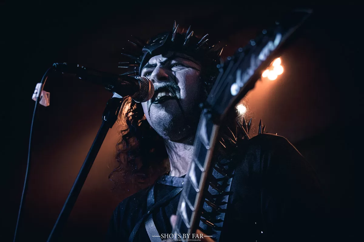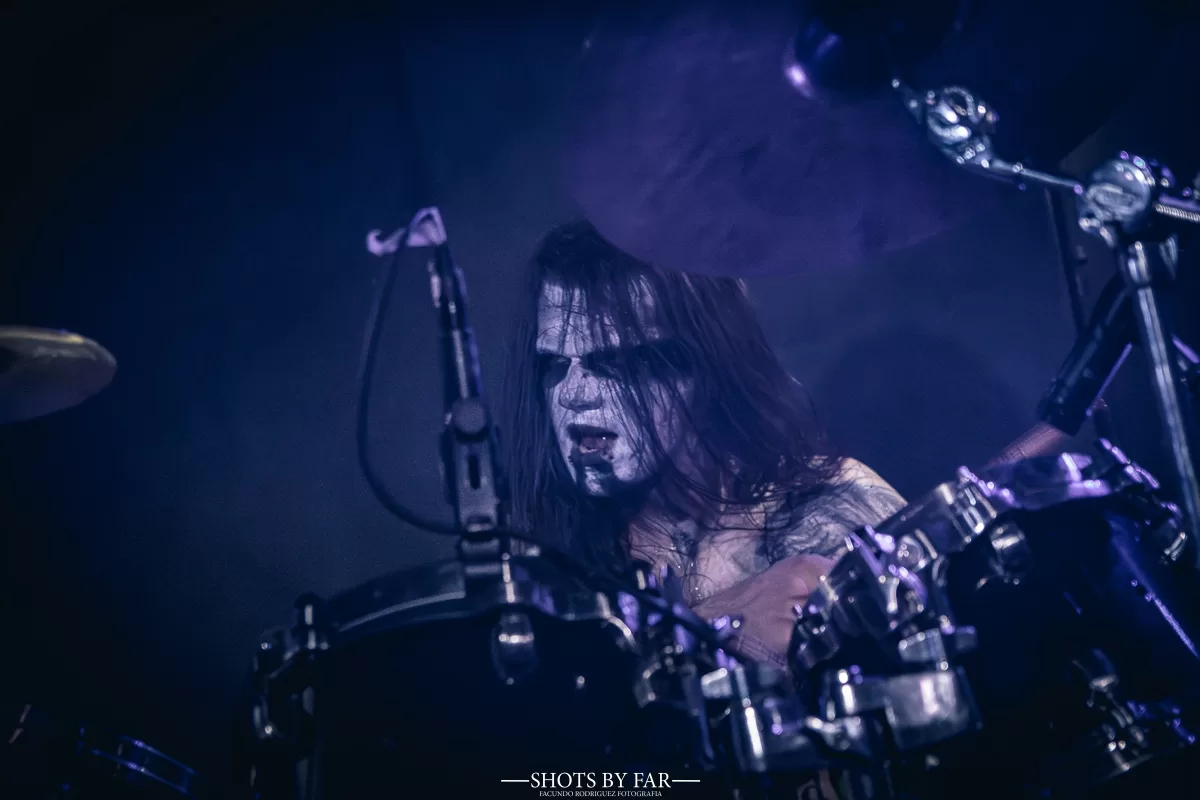 El set comienza con “Trumps of an Archangel”, de su trabajo más actual, que desciende como una invocación directa. El zigzagueo de acordes que tiene en la viola este tema caen como cuchillas sobre una base rítmica siniestra. La banda entra firme, sólida, con una presencia que no necesita exagerar su teatralidad: simplemente está ahí, y es contundente. No hay mise en scéne en el black metal, sino una pulsión llena de odio que busca fugar y la sedición de Este-Mundo.