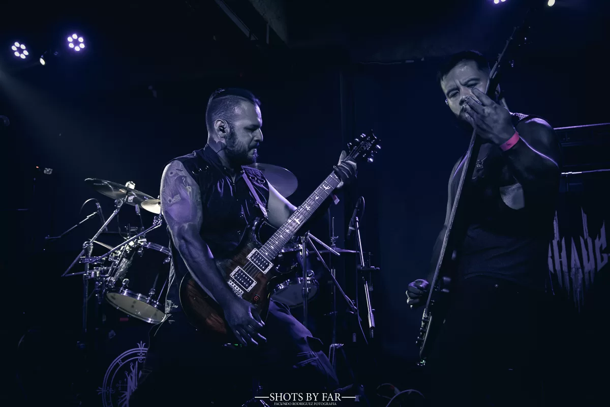 Esta cruzada hereje inició con la primera banda de la noche: Rhaug. Los primeros sonidos ya nos colocan en su atmósfera: el ritual ha comenzado. Se mueven con precisión entre cadencias melancólicas y melodías estridentes propias del symphonic black death metal. El aire de la cueva se carga con una vibración sombría, casi litúrgica.