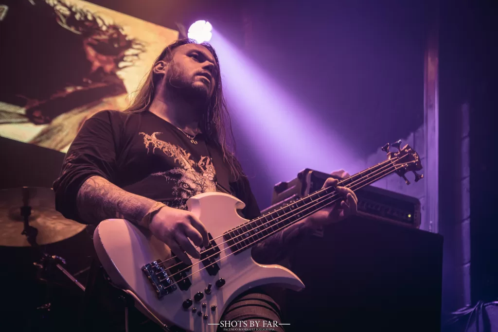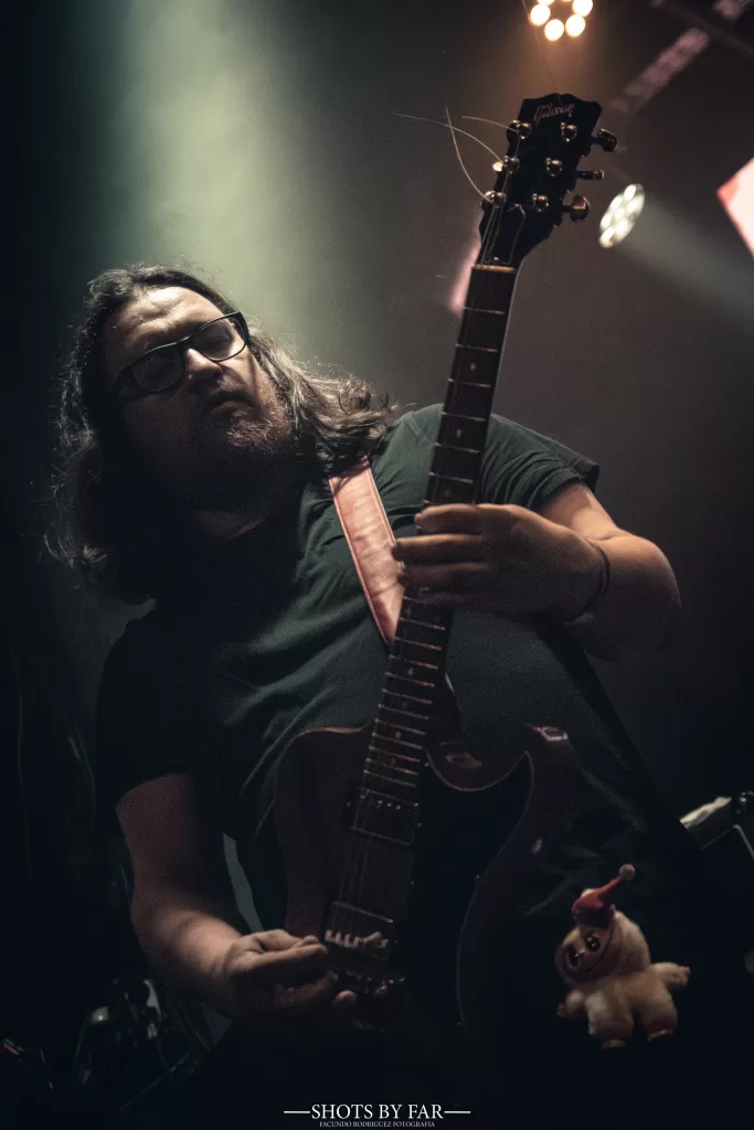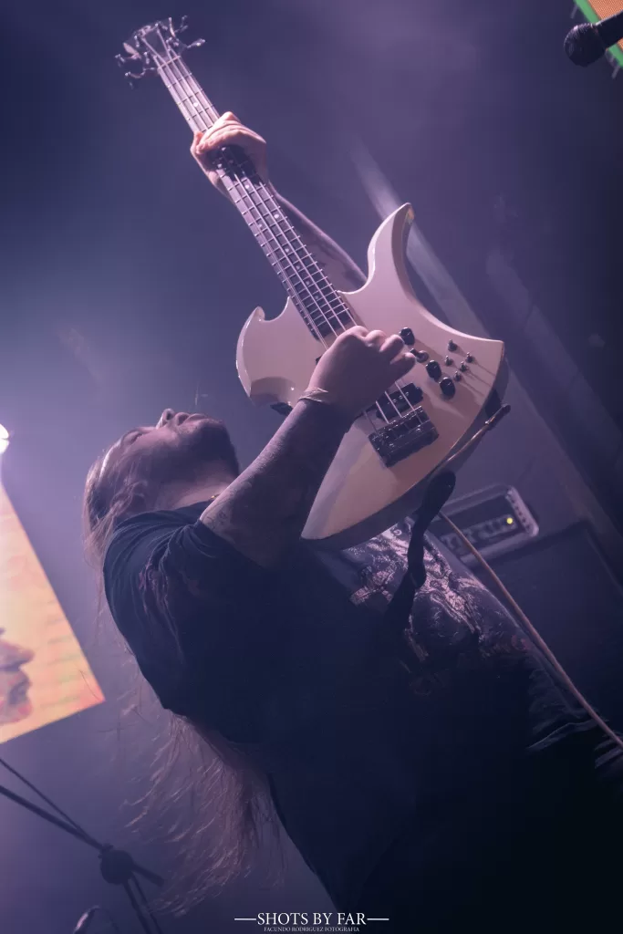 Andrew, por su parte, actuó como puente. Manejó un tono áspero pero con groove y aportando coros que se complementaban con las líneas vocales de Igor. En “Thoughts and Prayers”, uno de los momentos más intensos de la noche, el doom se volvió casi espiritual. Igor cantó con una mezcla de tristeza y fuerza, y cuando llegó el coro, el público acompañó con un “uooooo” que lo hizo sonreír de verdad. No fue un gesto de frontman ensayado: se sintió como un alivio, un momento de conexión. Entre una canción y otra, el vocalista interactuó con los fans, bailó con la guitarra y mostró carisma de sobra.
