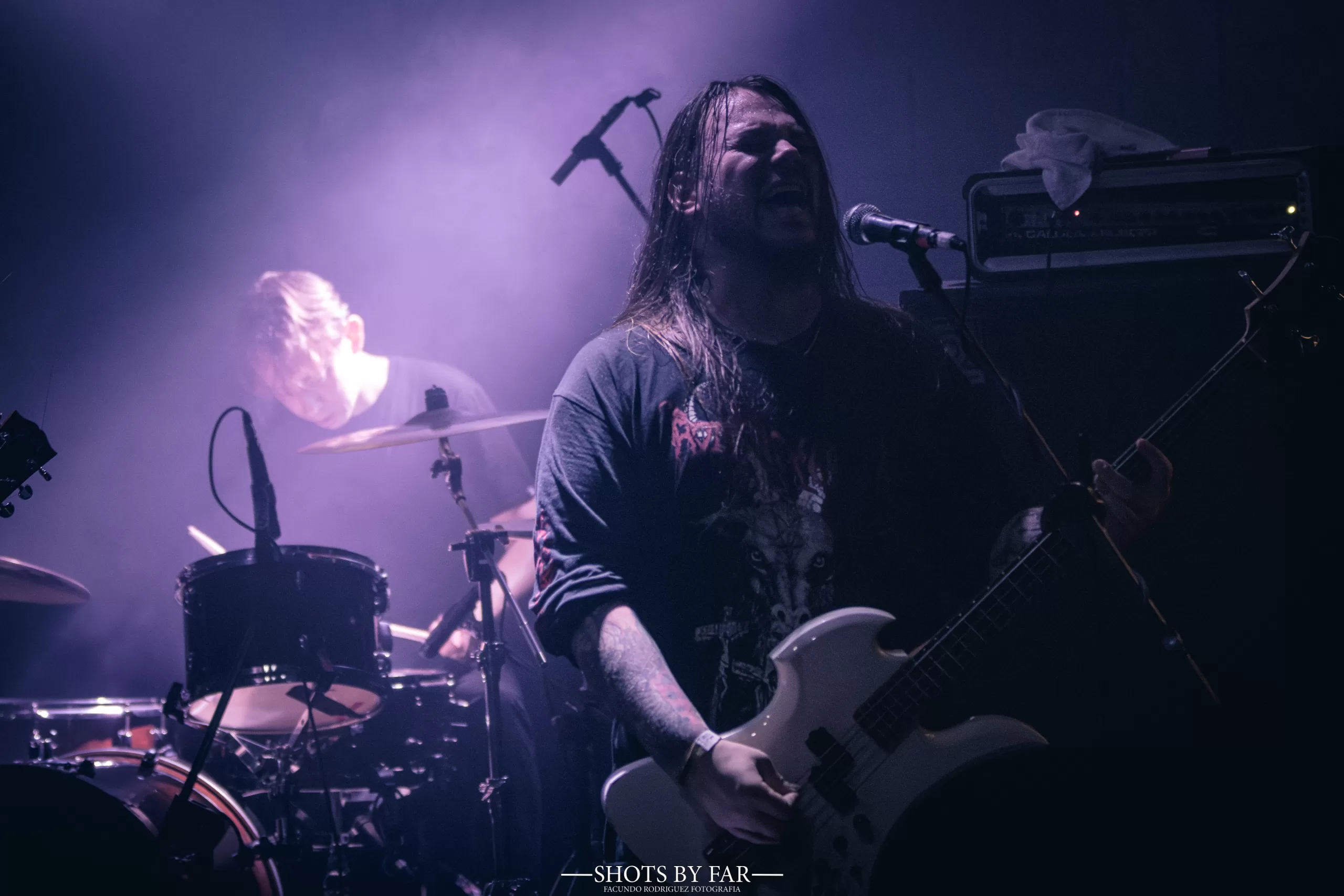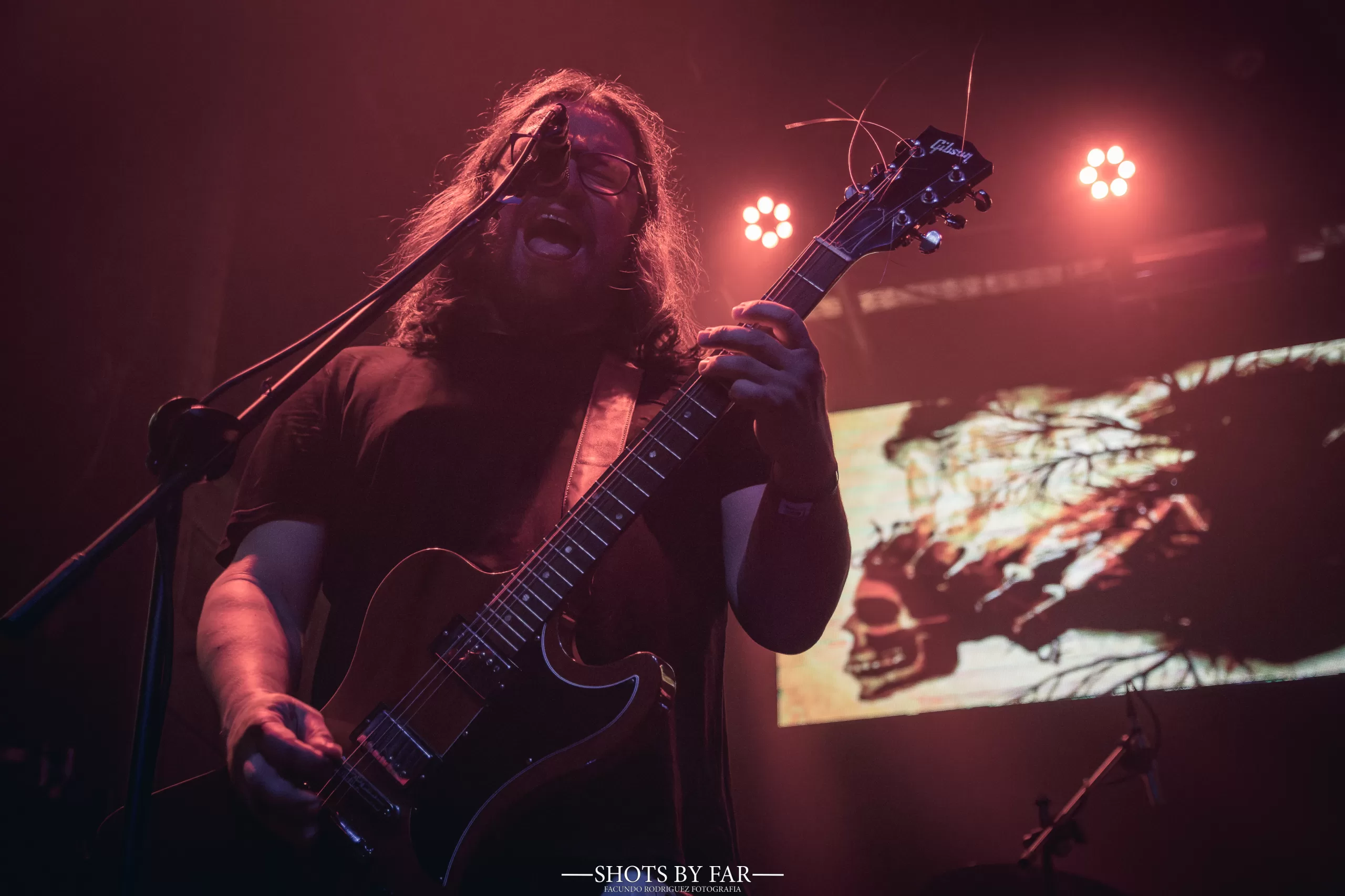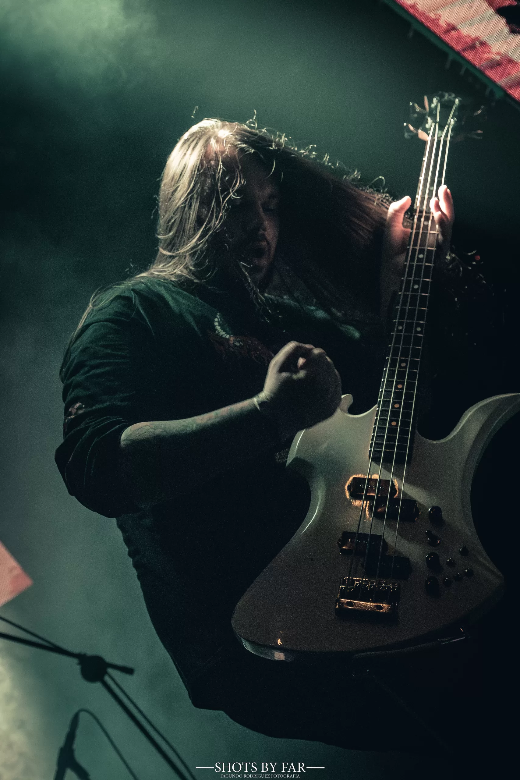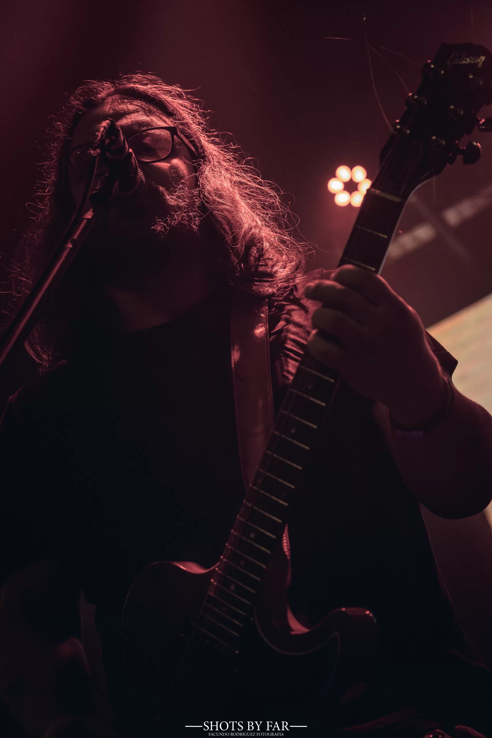 Andrew, por su parte, actuó como puente. Manejó un tono áspero pero con groove y aportando coros que se complementaban con las líneas vocales de Igor. En “Thoughts and Prayers”, uno de los momentos más intensos de la noche, el doom se volvió casi espiritual. Igor cantó con una mezcla de tristeza y fuerza, y cuando llegó el coro, el público acompañó con un “uooooo” que lo hizo sonreír de verdad. No fue un gesto de frontman ensayado: se sintió como un alivio, un momento de conexión. Entre una canción y otra, el vocalista interactuó con los fans, bailó con la guitarra y mostró carisma de sobra.
