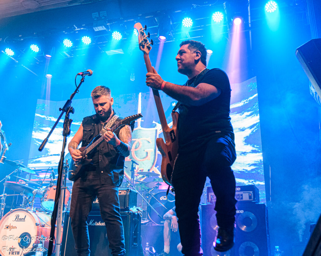Pero antes hubo bandas invitadas, la primera en hacerlo a las 19:30 horas fue Proyecto Grial. Se trata de una banda de Power Metal melódico, con letras inspiradas en épocas medievales. Está integrada por Pablo López en voz, Nicolás Moyano en Bajo, Eduardo Medina en Batería, Iván Montenovo en guitarra y Mauro Amaya en teclados. Repasaron temas de su EP editado 2018, como también “Visión Etérea”, tema con video clip que fue lanzado recientemente, y que fue ejecutada en vivo, con buena repercusión entre el público. De sorpresa nos trajeron un cover, también muy festejado por la parcialidad, y no era para menos: «Como Relámpago en la Oscuridad», de los legendarios Logos. Un show apto para la apertura de la noche, que incluyó la invitación del cellista Ariel Salgado, algo poco común de ver, al menos en los escenarios de la ciudad mediterránea.