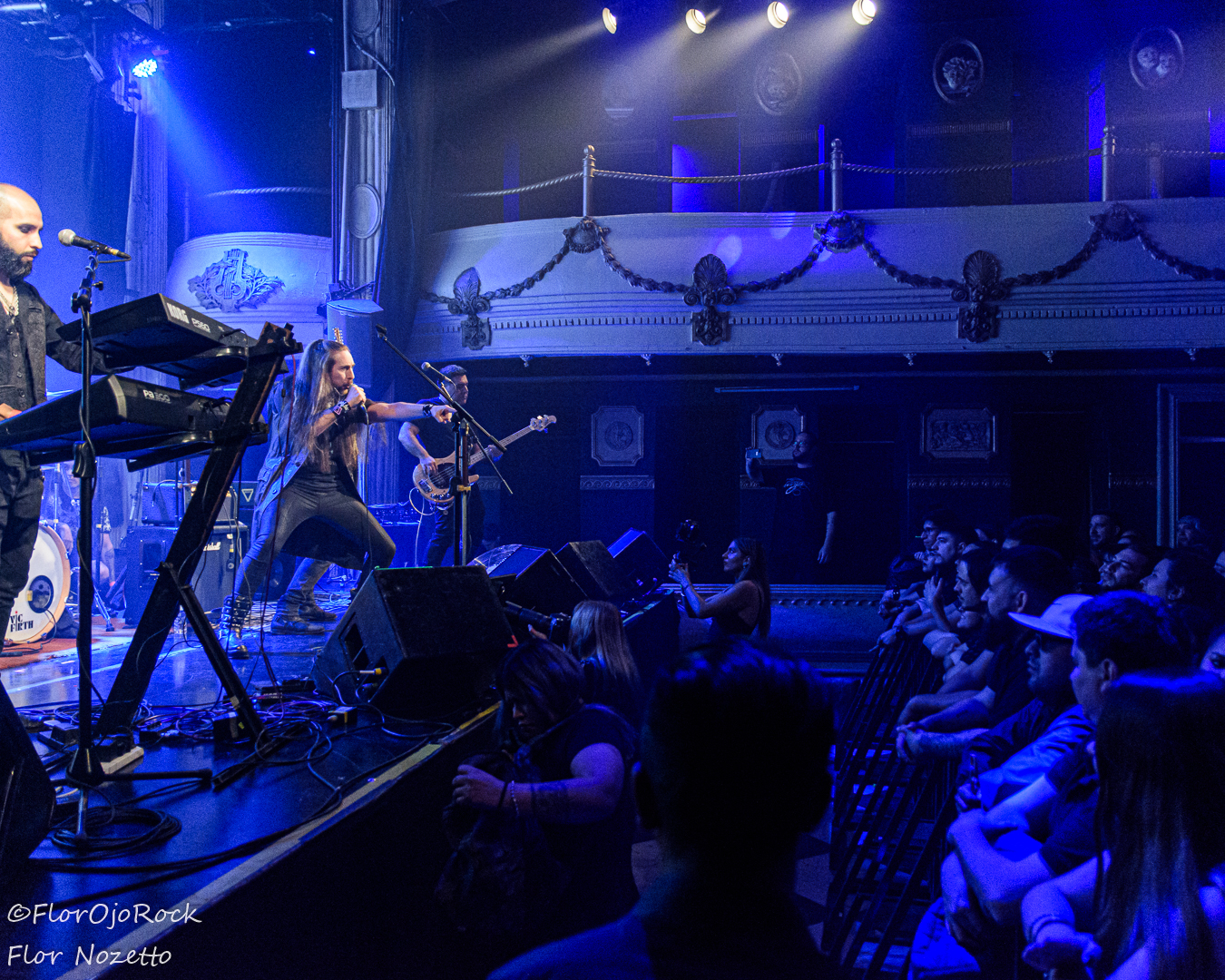 Pero antes hubo bandas invitadas, la primera en hacerlo a las 19:30 horas fue Proyecto Grial. Se trata de una banda de Power Metal melódico, con letras inspiradas en épocas medievales. Está integrada por Pablo López en voz, Nicolás Moyano en Bajo, Eduardo Medina en Batería, Iván Montenovo en guitarra y Mauro Amaya en teclados. Repasaron temas de su EP editado 2018, como también “Visión Etérea”, tema con video clip que fue lanzado recientemente, y que fue ejecutada en vivo, con buena repercusión entre el público. De sorpresa nos trajeron un cover, también muy festejado por la parcialidad, y no era para menos: «Como Relámpago en la Oscuridad», de los legendarios Logos. Un show apto para la apertura de la noche, que incluyó la invitación del cellista Ariel Salgado, algo poco común de ver, al menos en los escenarios de la ciudad mediterránea.
