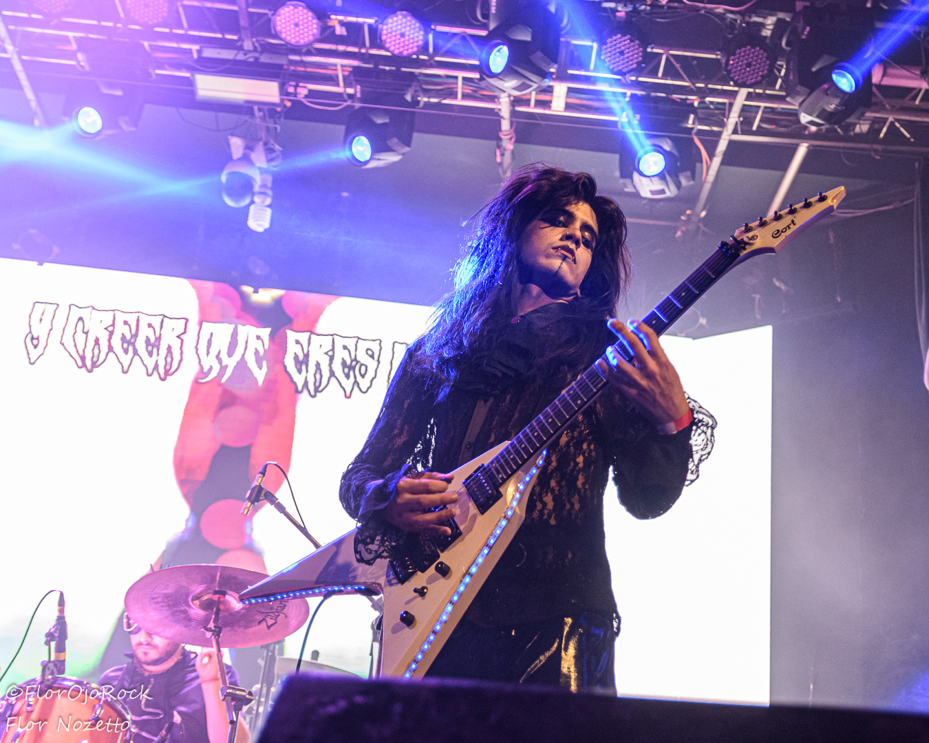 A las 20:10 le tocó el turno a Inazulina. Es una banda oriunda de la Ciudad de Buenos Aires, una agrupación de Metal gótico, integrada por “Anílorac” Carolina Bakos que es fundadora, compositora, voz y guitarrista, “Black Tear” en teclados, “Steel” en bajo, “Spell” en guitarra líder y “Sirius” en batería. Con cuatro discos ya editados, siendo el ultimo “Diamantina Venus 2020”, el cual se caracterizó por la presentación de las doce canciones en formato single y video lyrics artístico. No son tan conocidos en Córdoba, pero recibieron una cálida recepción, y podemos decir que ya han puesto un pie en esta provincia. También se fueron muy aplaudidos.