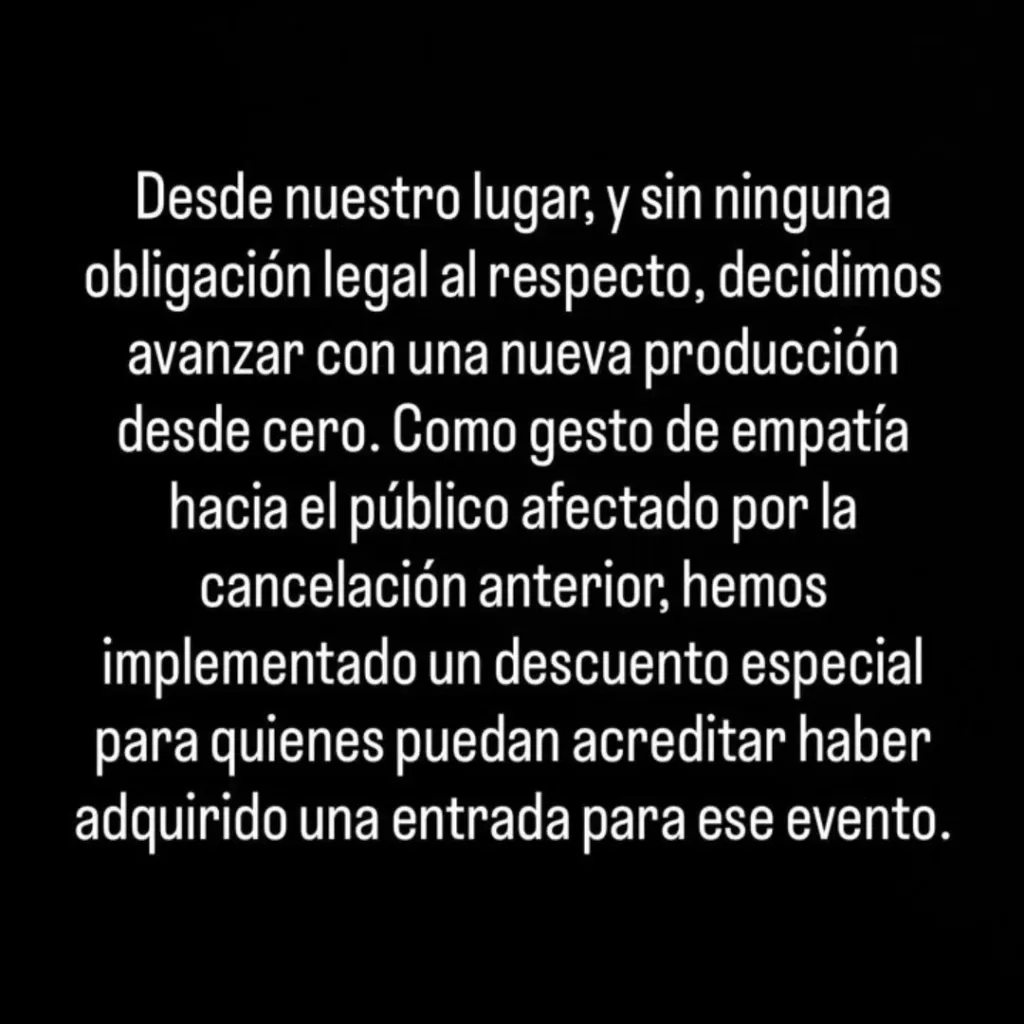No obstante, tras el anuncio oficial, el resentimiento chocó con el profesionalismo, de una manera absolutamente inmadura, generando un ruido amarillista e innecesario con intento de boicot hacia una de las productoras más honestas de nuestra escena. Generaron confusión entre los fans del músico, asistentes al evento actual y compradores estafados del evento anterior que aún no consiguieron reembolsar el dinero de la entrada para el show cancelado.